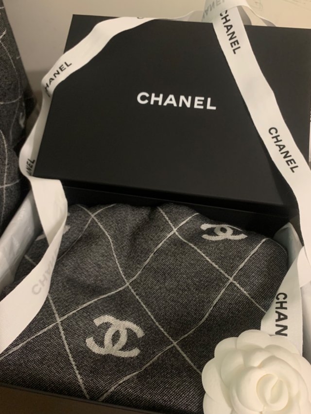 CHANEL CC LOGO BLACK CASHMERE SCARF
