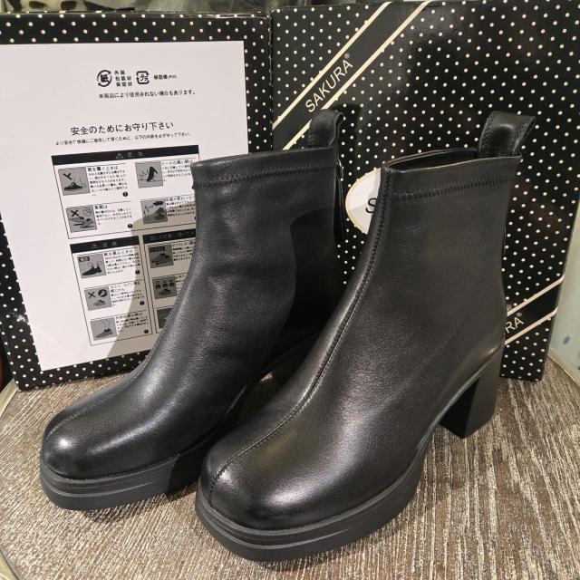 JKWOMENS ORDER BLACK LEATHER THICK HEEL SHORT BOOTS