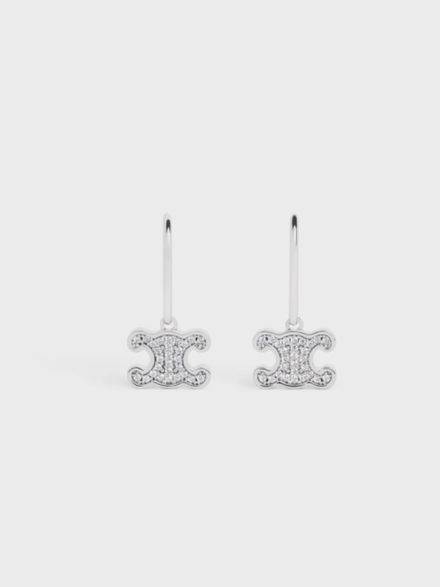 「ORDER」CELINE TRIOMPHE RHINESTONE EARRINGS IN BRASS WITH RHODIUM FINISH AND CRYSTALS