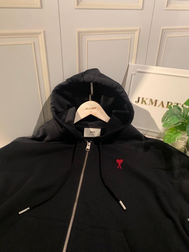 AMI PARIS RED AMI DE COEUR ZIPPED HOODIE