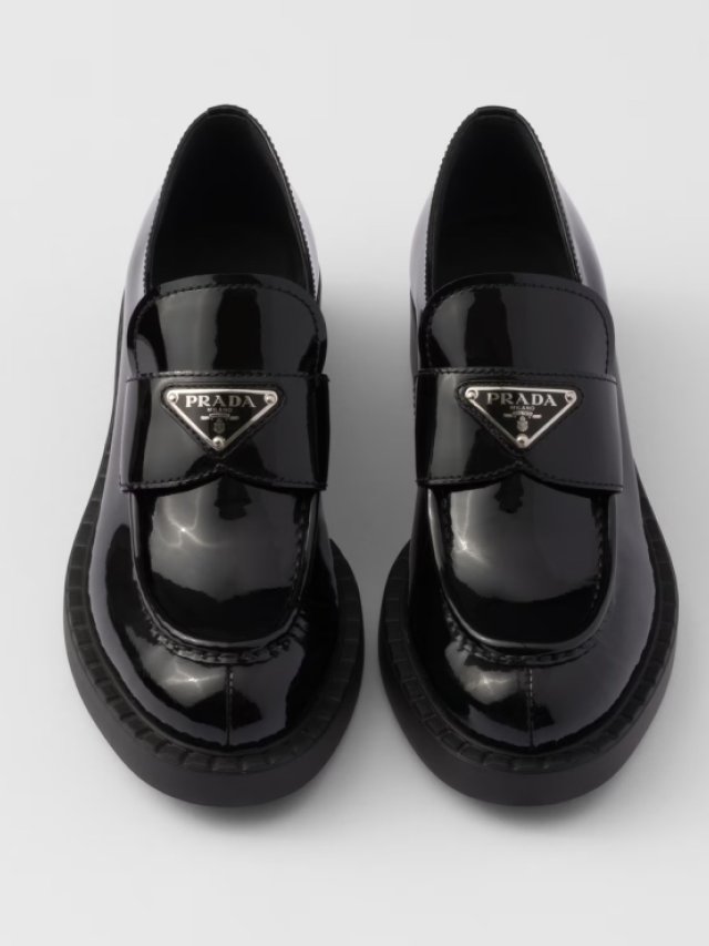PRADA CHOCOLATE PATENT LEATHER LOAFERS