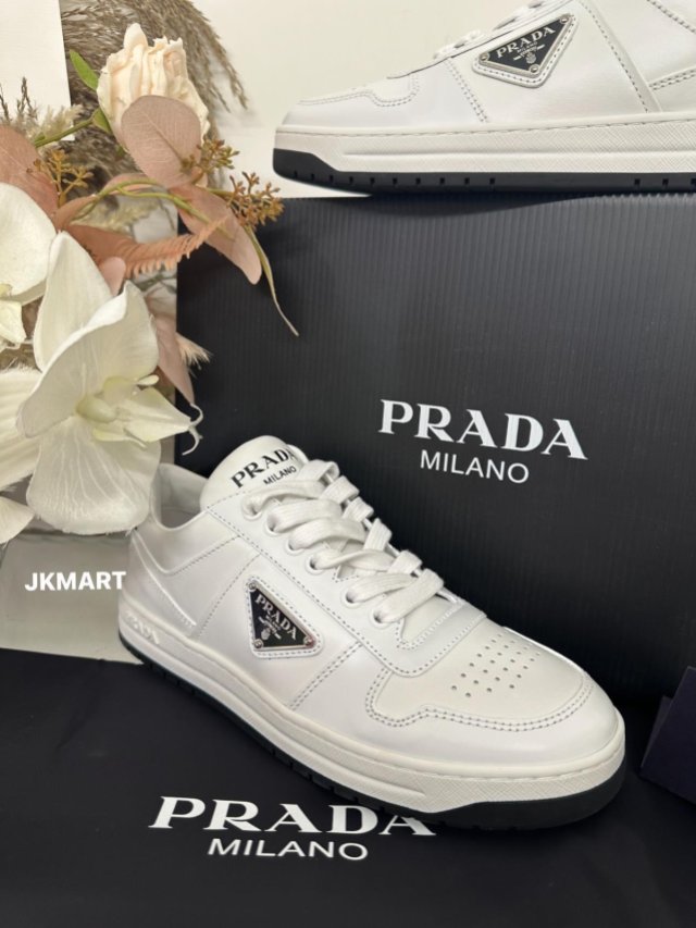 PRADA LEATHER SNEAKERS 真皮黑白波鞋(女裝)