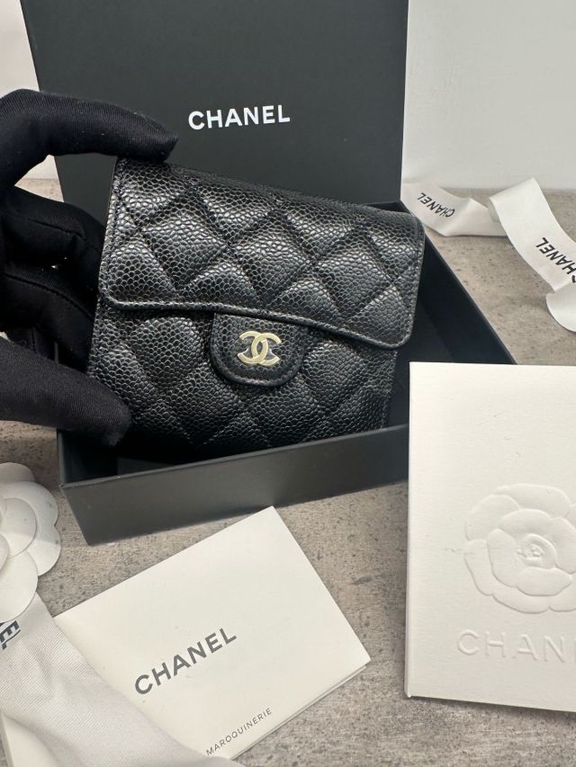 CHANEL CLASSIC SMALL WALLET CAVIAR BLACK GOLD