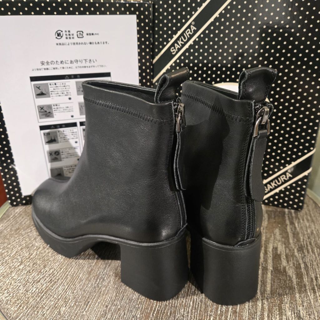 JKWOMENS ORDER BLACK LEATHER THICK HEEL SHORT BOOTS