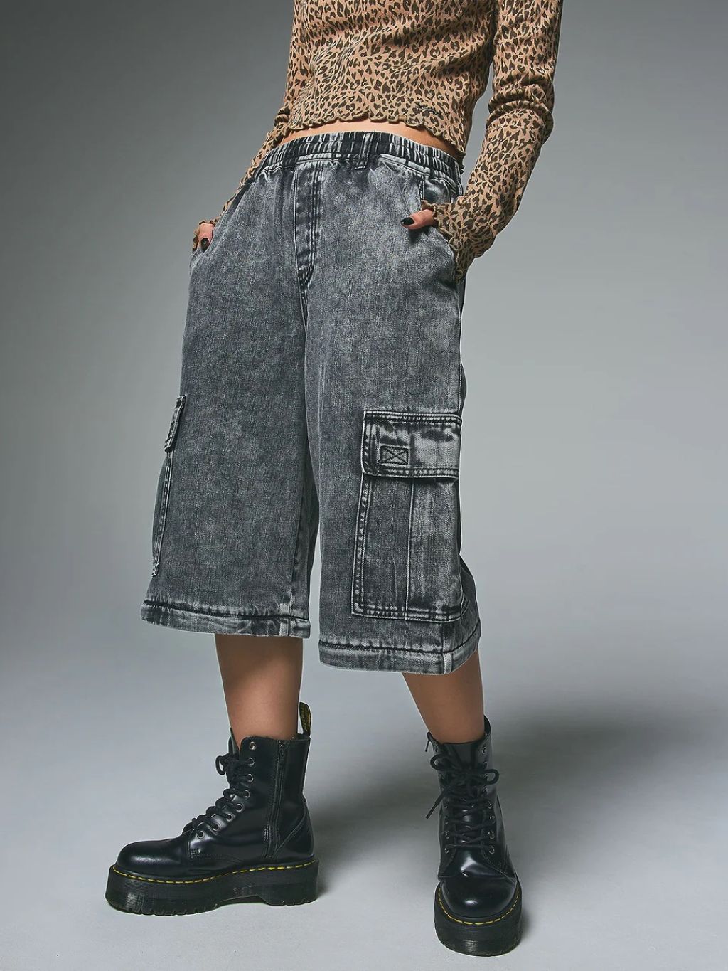 XG21 JAPAN🇯🇵 XGIRL DENIM WASHED 2WAY WIDE LEG CARGO PANTS