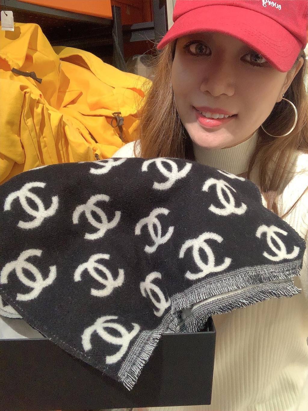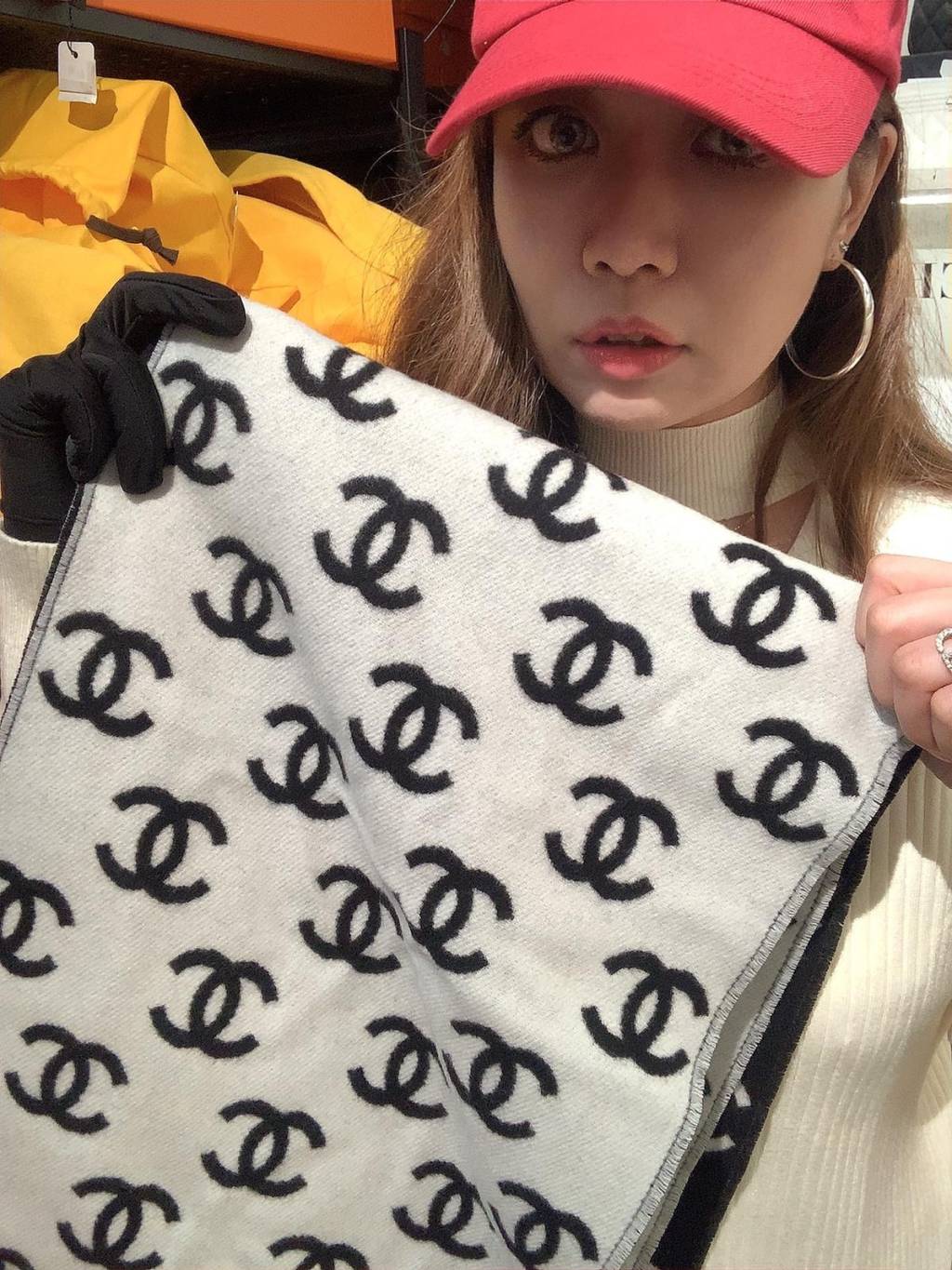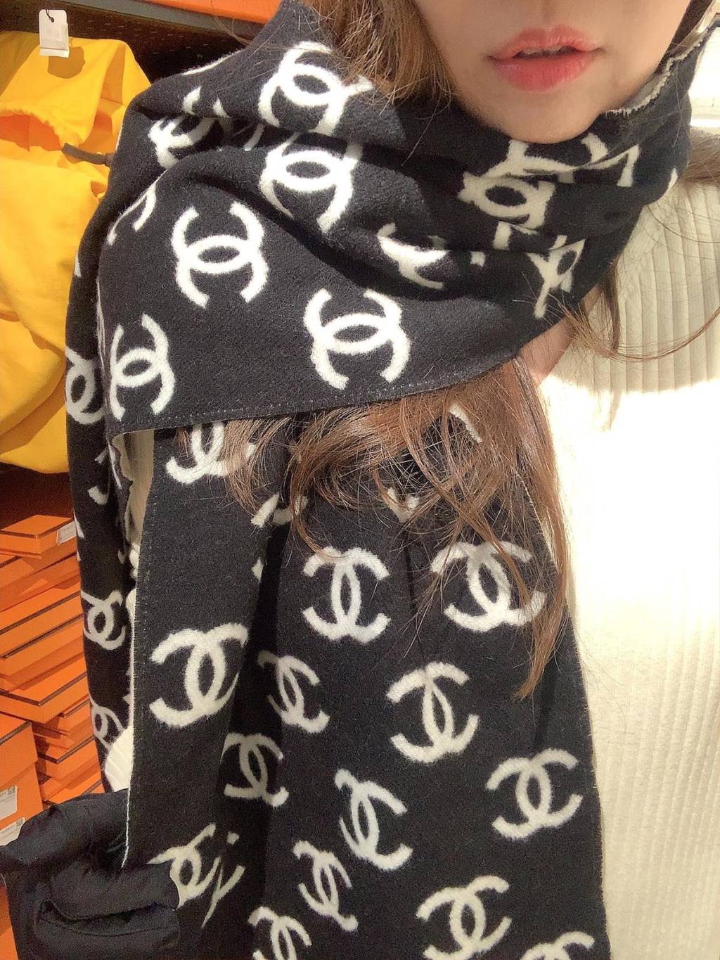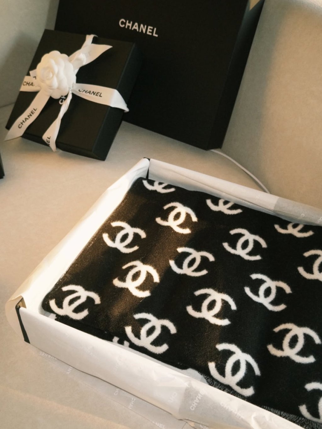 CHANEL CC LOGO BLACK WHITE SCARF