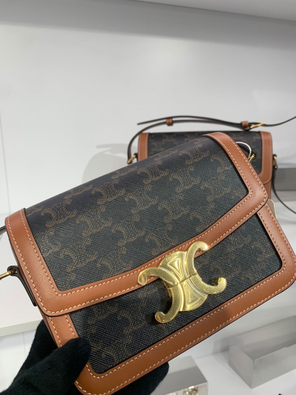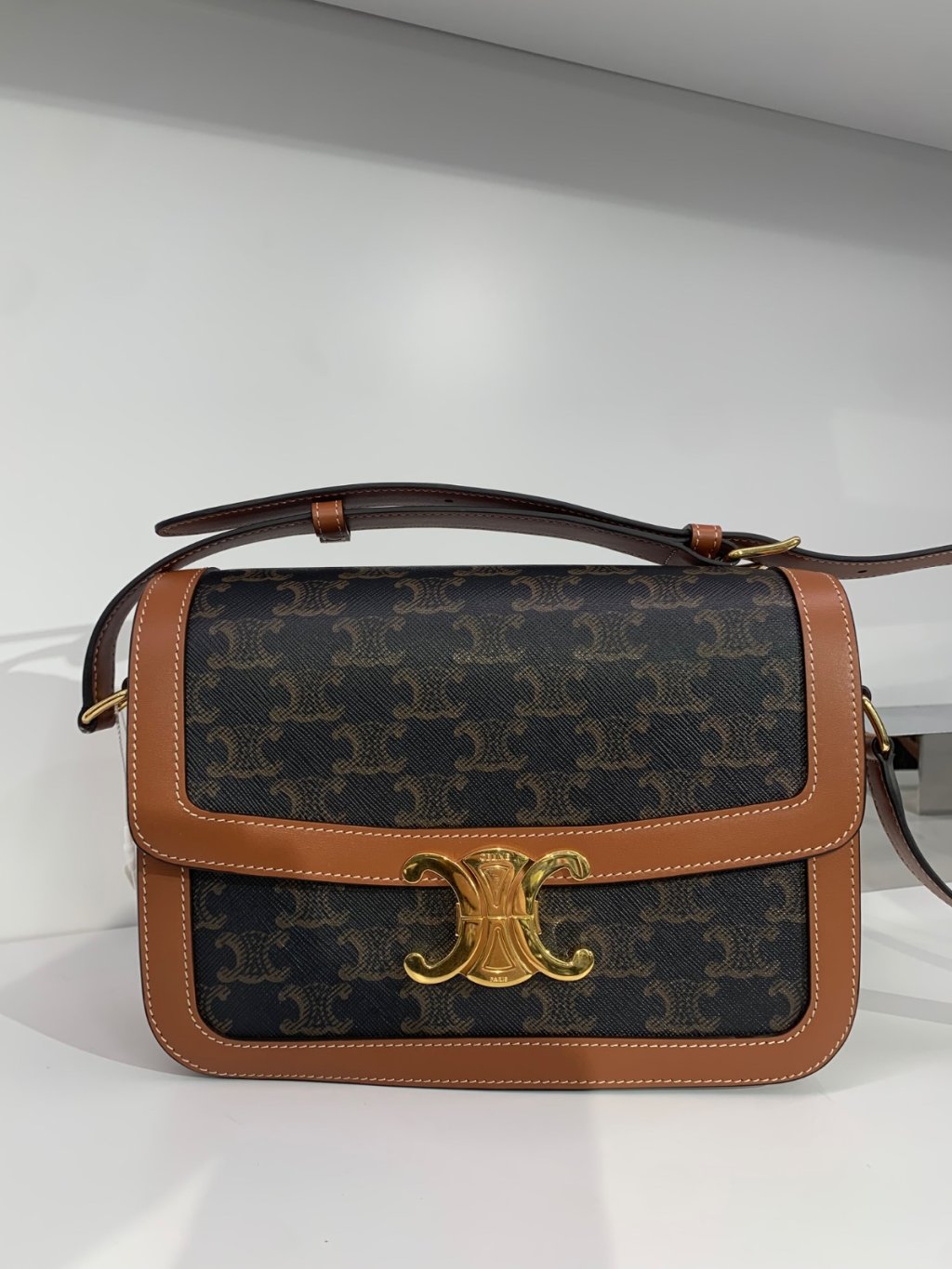 CELINE TEEN TRIOMPHE BAG IN TRIOMPHE CANVAS AND CALFSKIN