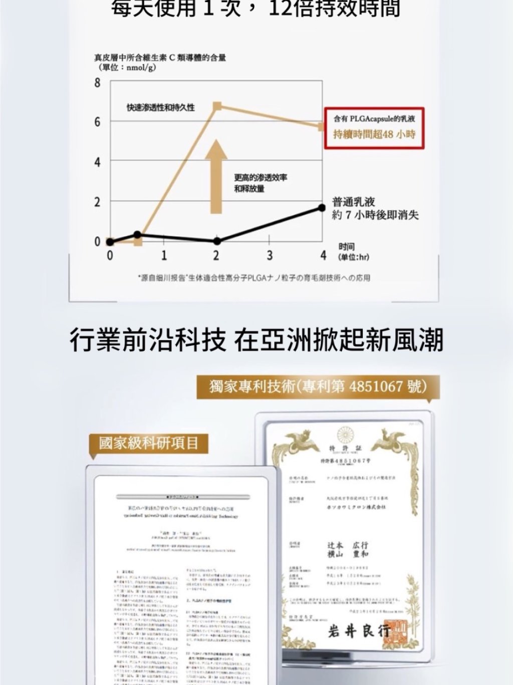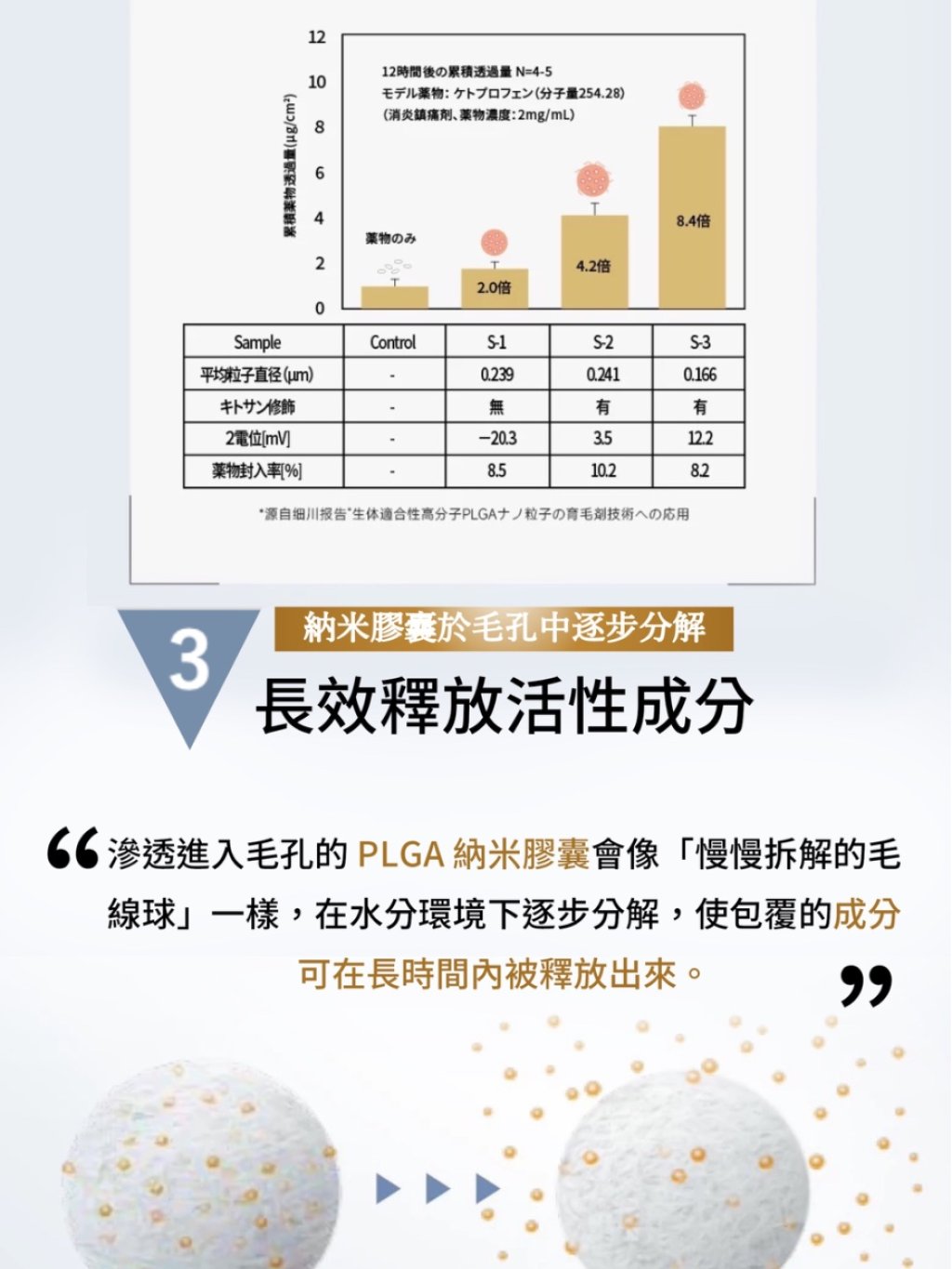 l 含 P L G A 納 ⽶ 膠 囊持 續 時 間 : 1 2 ⼩ 時 以 上