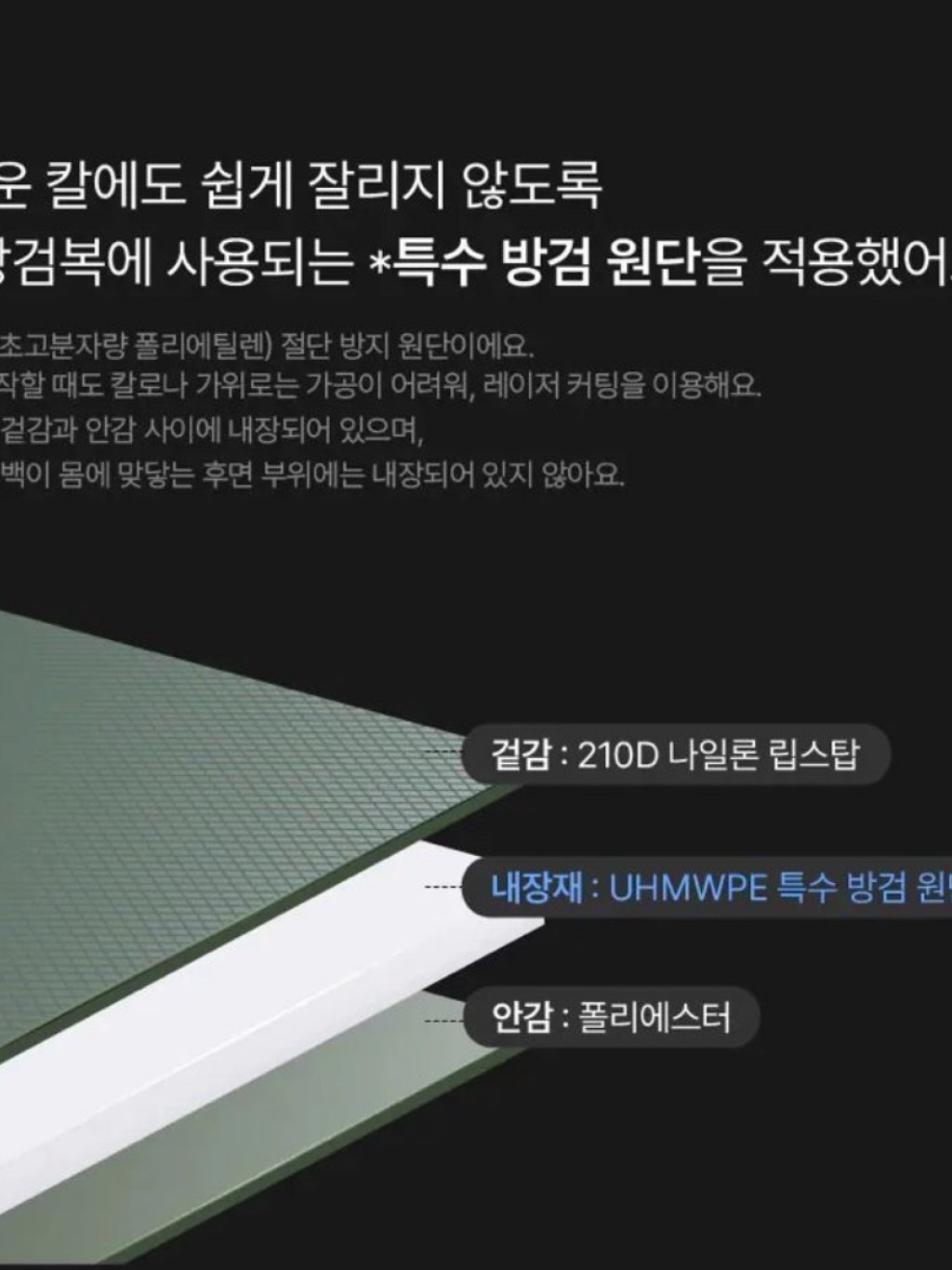 採用UHMWPE特殊防割織物