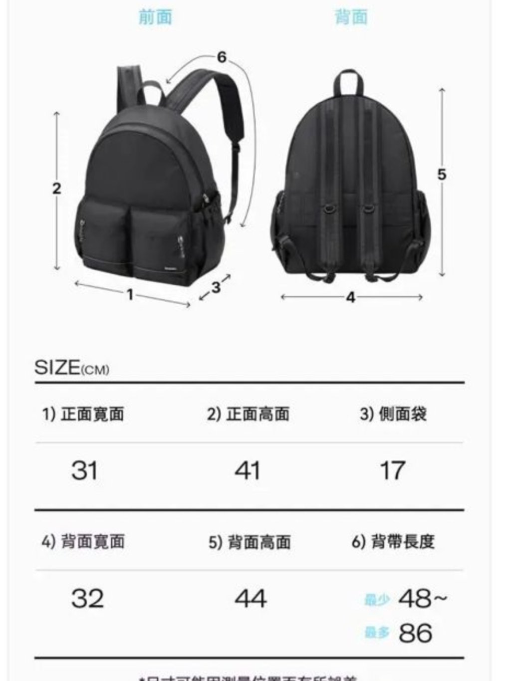 可調節背帶長度: 最少48~最大86cm