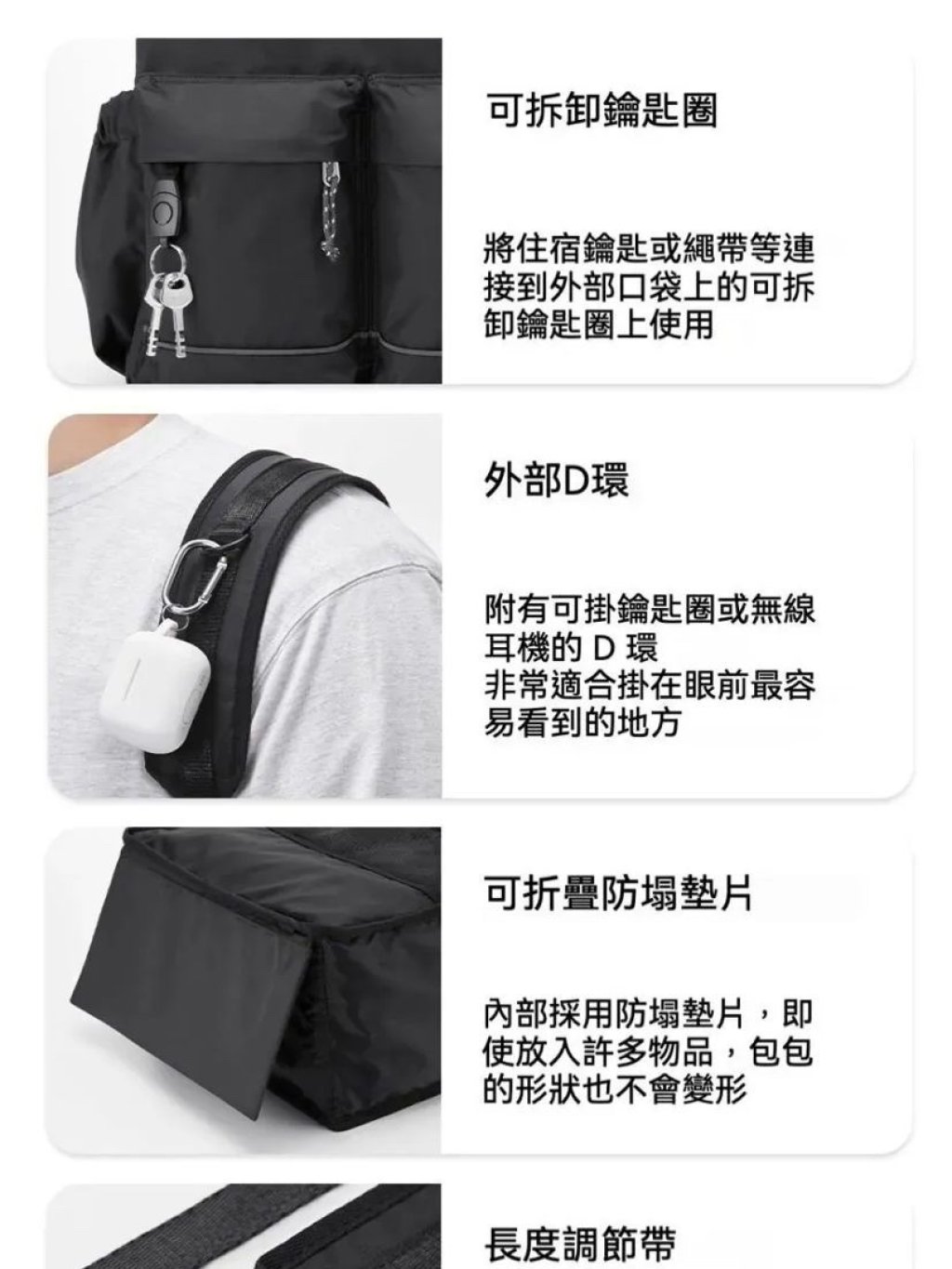 背包內部設掛鉤