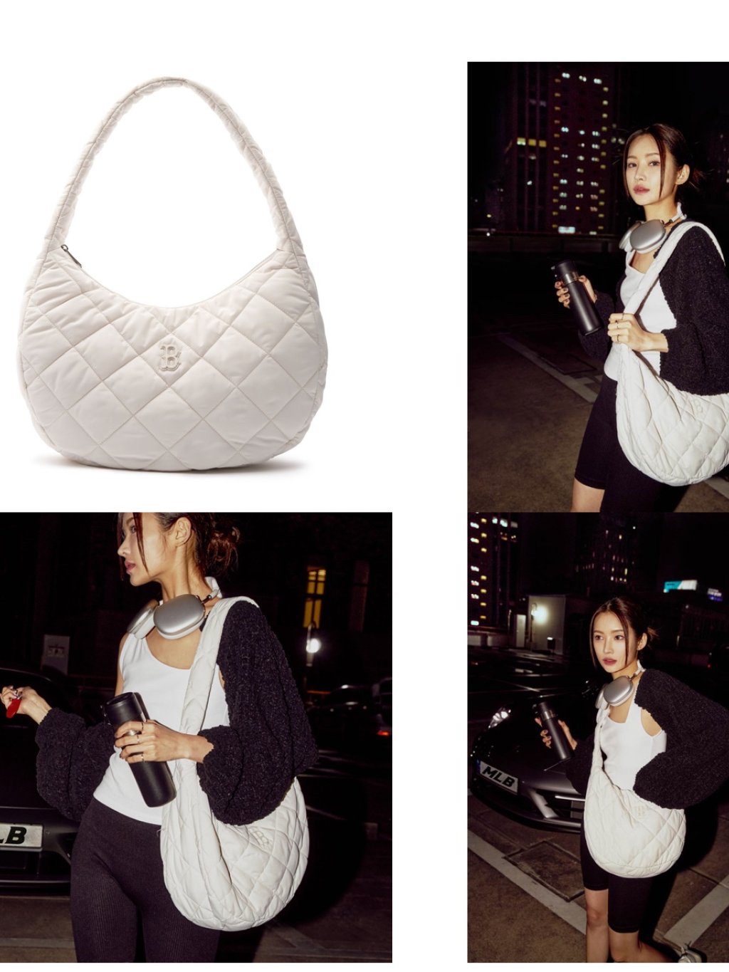 KOREA🇰🇷 MLB 8 PADDING LARGE HOBO BAG IVORY / BLACK