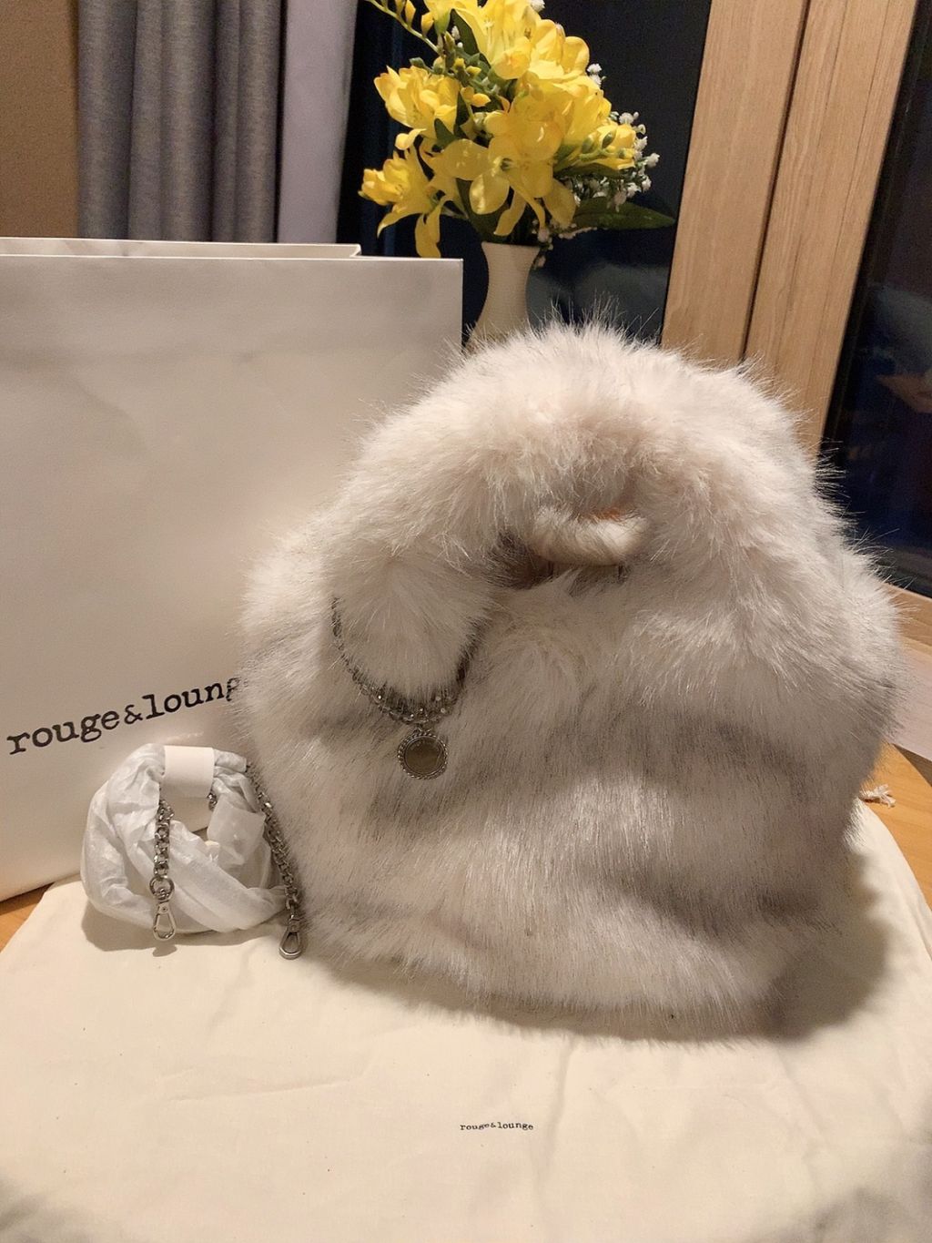 KOREA🇰🇷FASHION FAUX FUR BAG WITH CHAIN 「CROSS BODY HAND BAG」