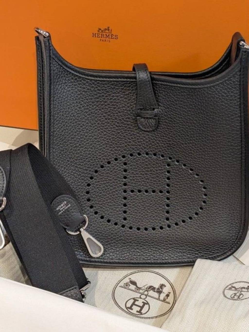 HERMES E23 EVELYNE 23 CK 89 NOIR SILVER K STAMP