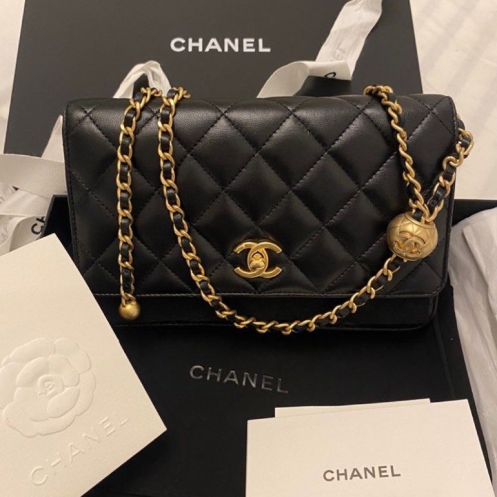 CHANEL CLASSIC WALLET ON CHAIN BLACK GOLD BALL