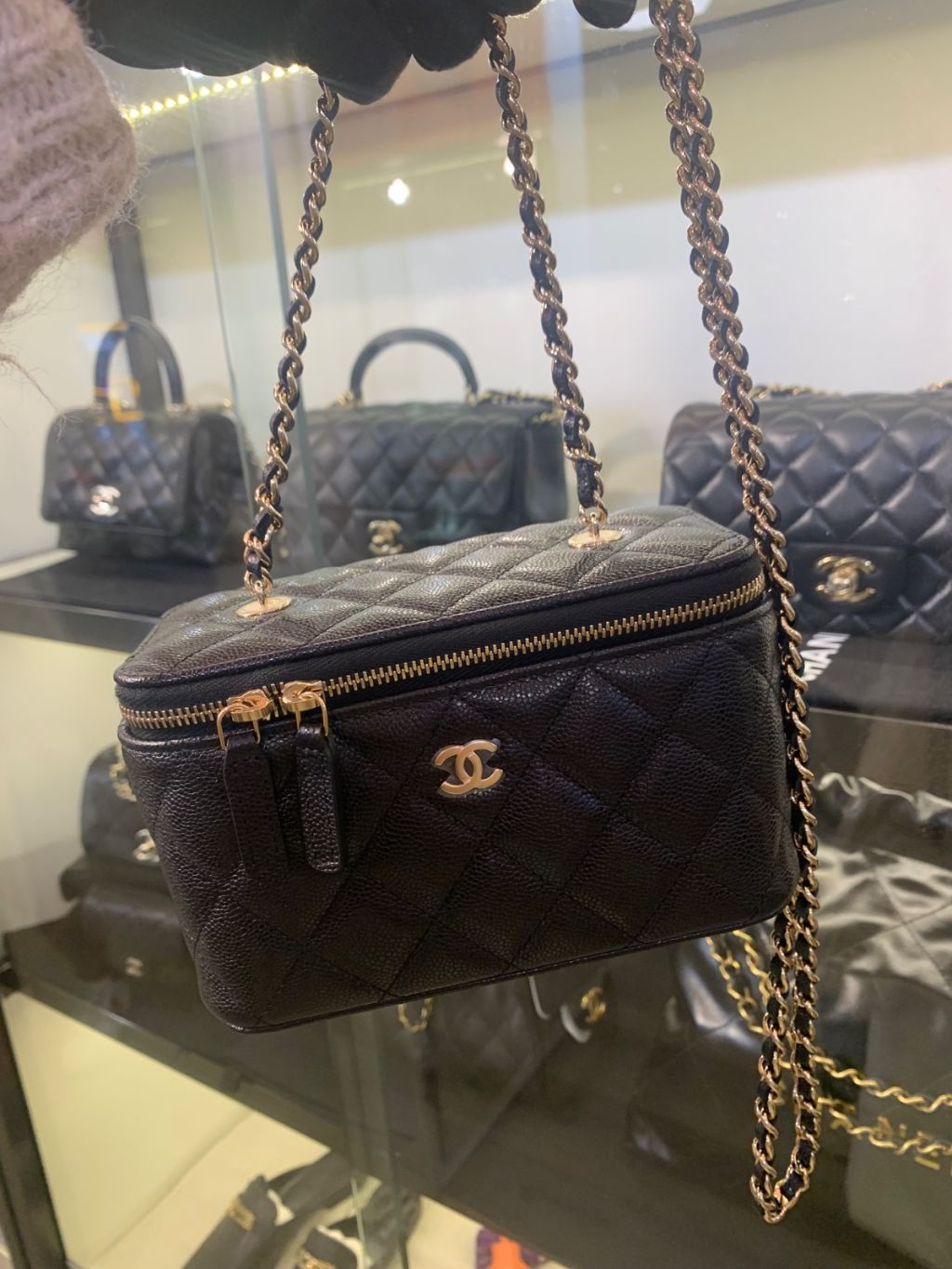 CHANEL BLACK CAVIAR LEATHER VANITY CASE