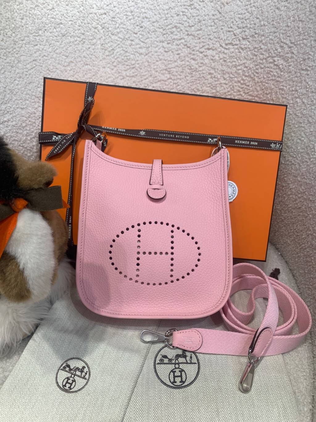 HERMES MINI EVELYNE 16 S2 ROSE SAKURA PINK SILVER TC K STAMP