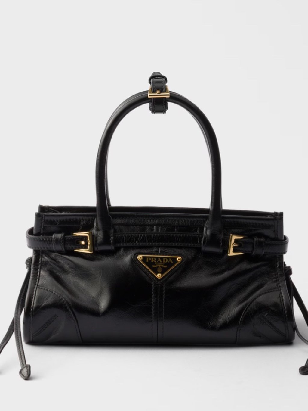 A symbol of innovation, unconventional spirit and a timeless attitude, the Bonnie bag expresses Prada's dialogue with modernity. The style is presented in a versatile and compact mini format enriched with distinctive metal buckles and laces on the sides. Soft leather with a liquid, glossy finish gives the design unmistakable style.