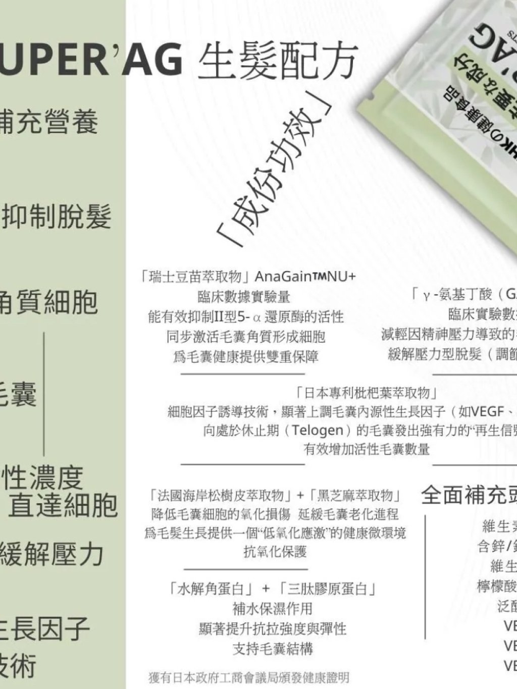 · 從源頭抑制導致毛囊萎縮的DHT,顯著減少洗頭、梳頭時的異常脫落。