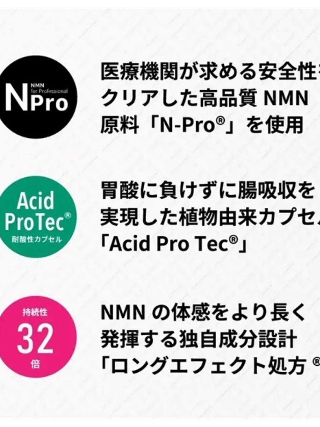 信頼できるNMNサプリメントをお手頃に始めたい方のためのエントリーモデル。